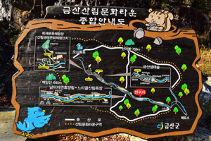 국립금산자연휴양림은 금산산림문화타운 내에 위치해 있어 인근의 다양한 체험 시설과 연계가 가능합니다. 금산산림문화타운은 남이자연휴양림, 느티골산림욕장, 금산생태숲, 산림생태문화체험단지, 목재문화체험장 등 다양한 산림 체험 시설을 하나로 모은 생태문화단지로, 국내 최대 규모의 산림문화 시설 중 하나로 꼽힙니다. 방문객들은 휴양림에 숙박하면서 인근의 하늘다리, 하늘데크, 하늘슬라이드 등의 시설을 이용할 수 있으며, 숲속 탐방로를 따라 하루 종일 자연 속에서 다양한 체험을 즐길 수 있습니다.