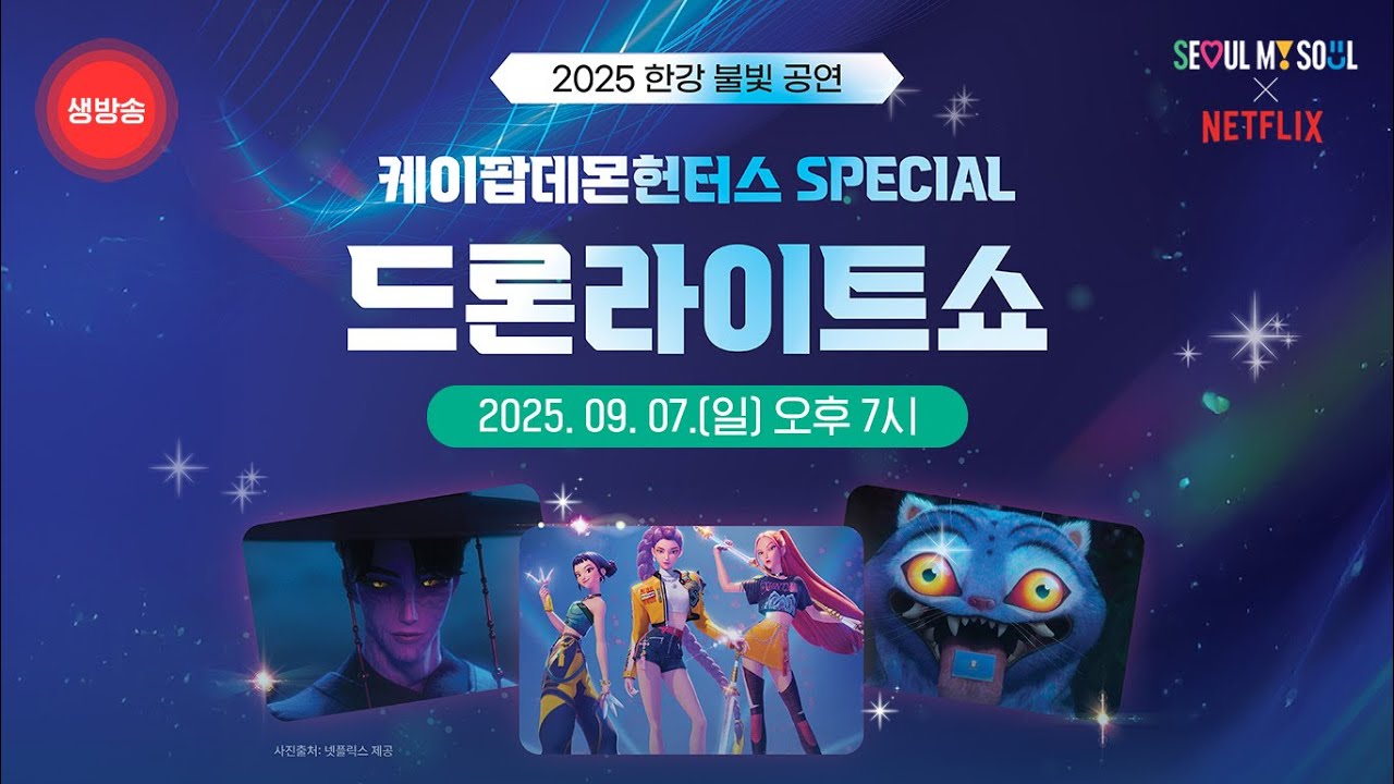 2025년 하반기 서울 한강 드론쇼는 넷플릭스 오리지널 시리즈 케이팝 데몬 헌터스와의 협업으로 새로운 도약을 맞이했습니다. 9월 7일 뚝섬한강공원에서 열린 공연에서는 1,200대의 드론이 청담대교, 북촌한옥마을, 남산타워 등 드라마 속 서울의 명소를 하늘에 구현하며 세계적인 주목을 받았습니다. 특히 글로벌 인기 걸그룹 헌트릭스가 출연해 스토리텔링을 강화한 퍼포먼스를 선보이며 드론쇼의 예술적 완성도를 한층 높였습니다.