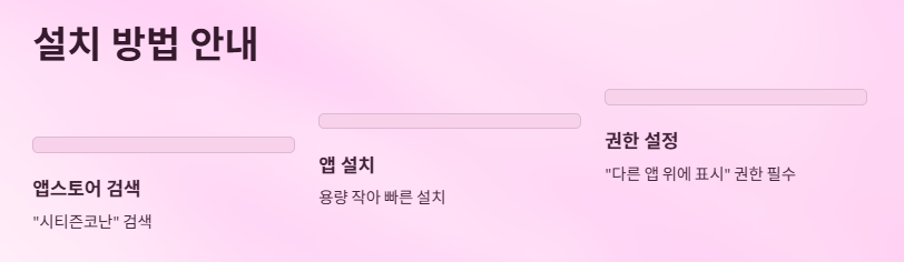앱스토어에서 "시티즌코난" 검색하니까 바로 나왔고, 설치 용량도 크지 않아서 금방 끝났어요. 다만 권한 설정할 때 "다른 앱 위에 표시" 이런 건 처음에 안 켜놨다가 앱이 꺼지더라고요. 그런 건 꼭 주의하셔야 해요!