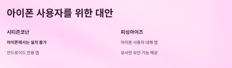 아이폰 시티즌 코난 앱이 지원되지 않기 때문에, 많은 사람들이 시티즌 코난 피싱아이즈를 대체 앱으로 고려하고 있다.