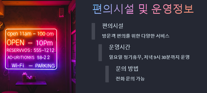 📌 운영시간: 10:30 - 21:30 (일요일 휴무)