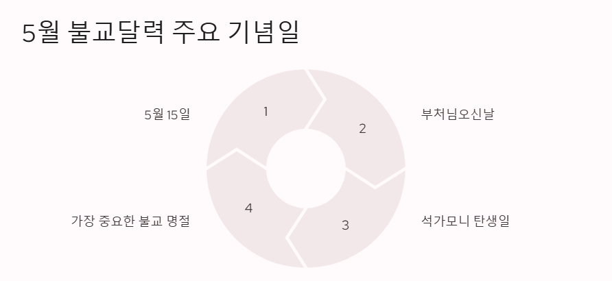 - 5월 15일(음력 4월 15일): 부처님오신날(석가모니 탄생일, 가장 중요한 불교 명절)