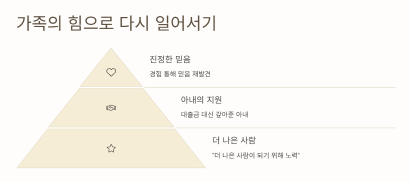안재모의 고백 중 가장 감동적이었던 부분은 그의 아내가 그를 지원해 주었다는 사실입니다. 그는 "이혼해도 할 말이 없다"고 말할 만큼 큰 죄책감을 느끼고 있었지만, 아내는 그를 지지하며 가정을 지키기 위해 노력했습니다. 이는 단순한 사랑의 표현을 넘어서, 신뢰와 책임감이 어떻게 관계를 지탱할 수 있는지를 잘 보여주는 예입니다. 결혼과 가정은 경제적 문제를 해결하는 곳이 아니라, 서로를 지지하며 함께 성장하는 공간임을 다시 한 번 상기시켜 줍니다.