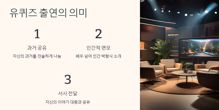 그의 인생은 아직도 진행형이다. 그리고 이번 유퀴즈 출연은 새로운 챕터의 시작을 알리는 서막일지도 모른다. ‘유 퀴즈 박형식’, 이 여운은 방송이 끝난 후에도 오래도록 남을 것이다.