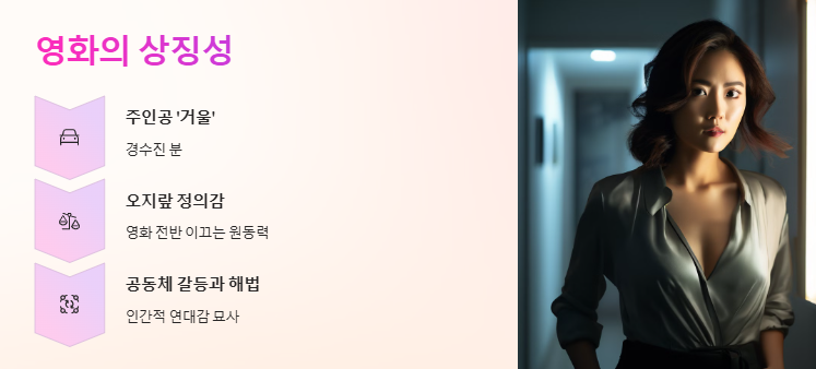 무엇보다 이 영화는 ‘백수아파트’라는 키워드가 가진 상징성과 재미 요소를 놓치지 않으면서도, 주인공 '거울'(경수진 분)의 오지랖 넘치는 정의감이 영화 전반을 이끈다. ‘백수아파트’는 단순한 소음 민원 해결의 이야기가 아닌, 공동체의 갈등과 해법, 그리고 인간적인 연대감이 묻어나는 작품이다.