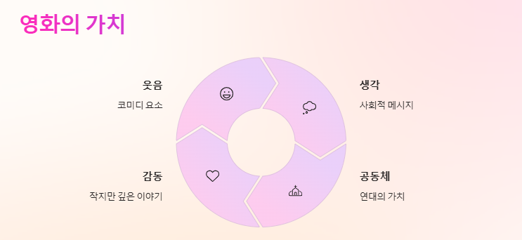 ‘백수아파트’는 단순히 소음을 쫓는 미스터리 영화가 아니다. 현실적인 문제에 코믹한 장면과 따뜻한 드라마 요소를 절묘하게 얹어 복합 장르의 재미를 극대화한다. 이 영화의 미스터리는 감정선을 해치지 않고 오히려 긴장감을 유지하며, 거울의 행동이 영화의 흐름을 유쾌하게 풀어간다.