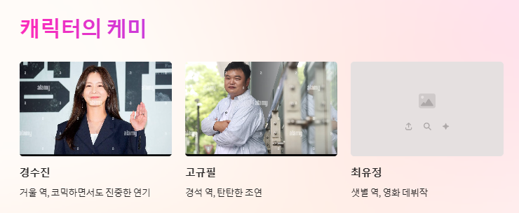 ‘백수아파트’는 단순한 캐릭터 배치가 아닌, 각 인물의 개성과 상호작용이 돋보인다. 경수진은 거울 역을 통해 코믹하면서도 진중한 연기를 선보이며 극을 이끈다. 고규필, 김주령, 이지훈, 최유정 등 탄탄한 조연진은 영화의 밸런스를 유지하면서도 각자의 존재감을 뽐낸다.