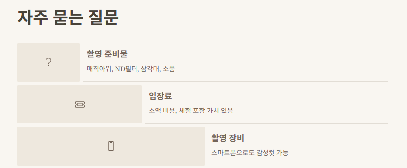 Q1. 촬영지 방문 전에 뭘 준비하면 좋을까요?
