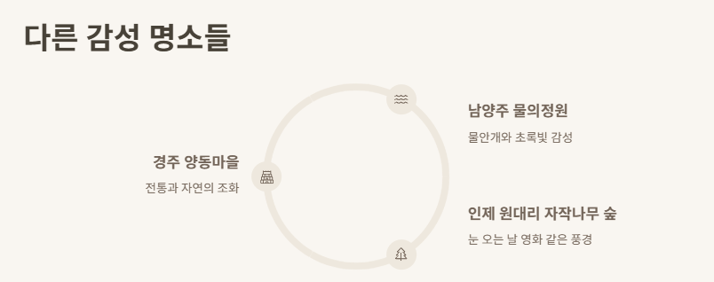 외암민속마을 말고도 제가 다녀온 다른 감성 명소들도 많아요. 특히 ‘천국보다 아름다운 촬영지 집’ 같은 느낌의 포인트들을 정리해볼게요!
