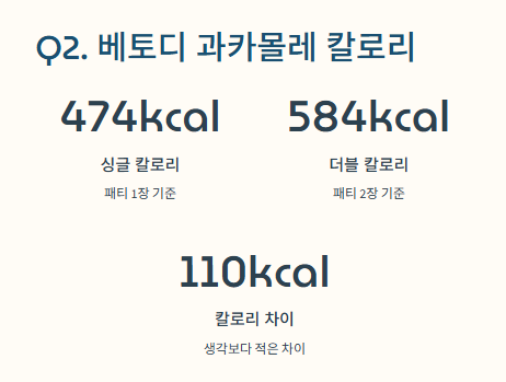 싱글은 약 474kcal, 더블은 584kcal로 더블이 조금 높아요. 그래도 부담은 덜한 편이에요.