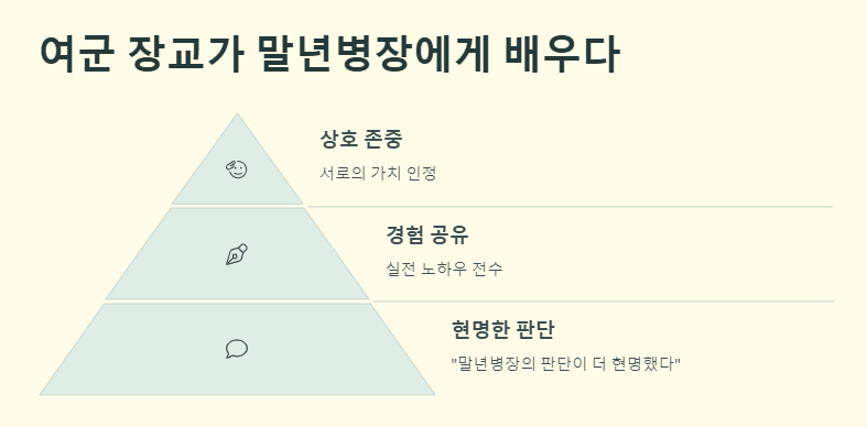 여군 장교가 말년병장을 질책하면서 벌어진 상황에서 시청자들은 “진정한 리더는 경청할 줄 안다”는 메시지를 느꼈다. ‘여군 장교 말년병장 참교육’이라는 표현이 입에 오르내렸지만, 실제로는 말년병장의 여유와 실전 노하우에 감명받은 장교의 성장기가 더 부각됐다.
