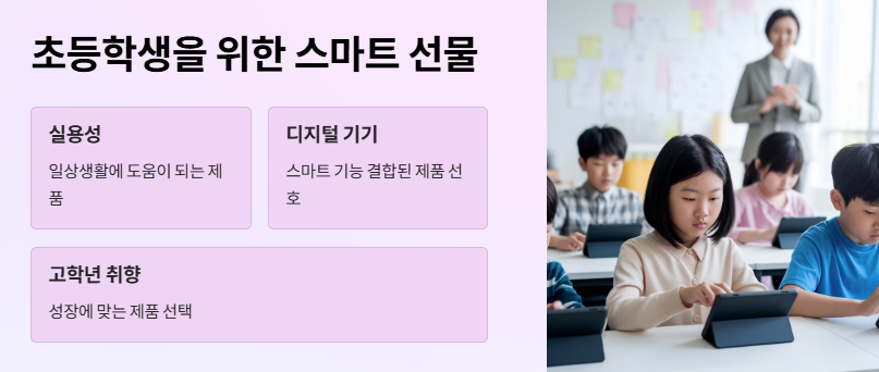 초등 고학년은 ‘어린이날선물’로 실용성과 디지털 기기 사용이 결합된 제품을 선호합니다. 예를 들어: