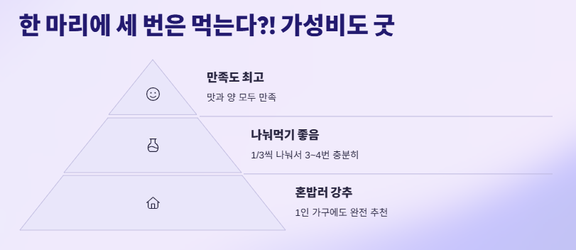 한 마리에 세 번은 먹는다?! 가성비도 굿