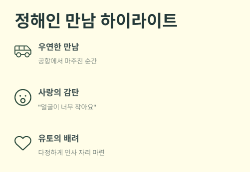 이번 방송에서는 추사랑이 공항에서 정해인을 우연히 마주하는 장면도 화제를 모았다. 사랑은 긴장한 표정으로 “얼굴이 너무 작아요”라고 감탄했고, 유토는 그녀의 팬심을 배려해 다정하게 인사 자리를 만들었다. 이 장면은 팬들 사이에서도 큰 반향을 일으켰다.