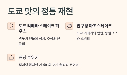 요즘 SNS에서 핫한 ‘추성훈 스테이크’! 처음엔 그냥 연예인 이름 붙은 마케팅일 줄 알았는데, 진짜였어요. 도쿄 리베라 맛집이랑 협업한 마초스테이크, 서울 압구정에 생겼다는 소문 듣자마자 친구랑 고고했어요.