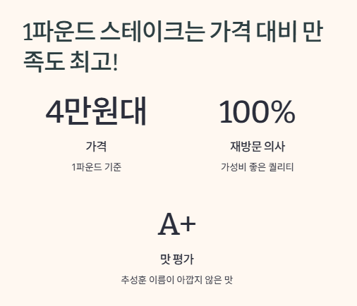 1파운드 스테이크는 가격 대비 만족도 최고!
