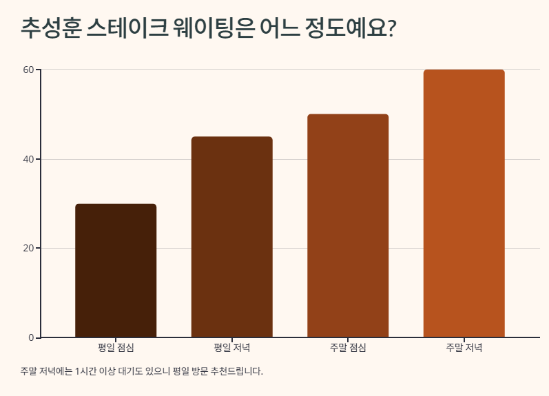 : 웨이팅 피하려면 평일 4시~5시 방문 추천! 인기 메뉴는 1파운드 스테이크예요.