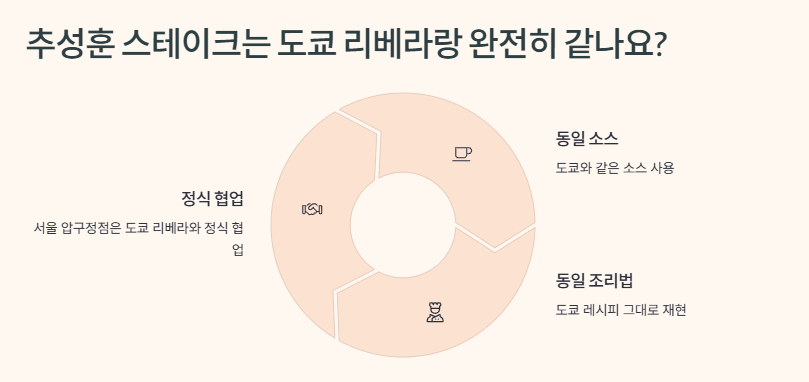 Q1. 추성훈 스테이크는 도쿄 리베라랑 완전히 같나요?