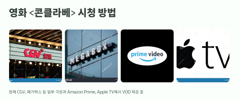 현재 CGV, 메가박스 등 일부 극장과 Amazon Prime, Apple TV에서 VOD 제공 중입니다.