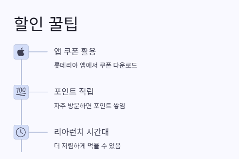 : 앱 쿠폰 사용과 리아런치 시간대 방문으로 가격 부담 줄이기 가능.