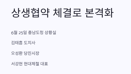 6월 25일에 충남도청 상황실에서 김태흠 도지사님, 오성환 당진시장님, 서강현 현대제철 대표님이 모여서 당진 종합병원·자사고 추진 협약을 체결했다고 해요.