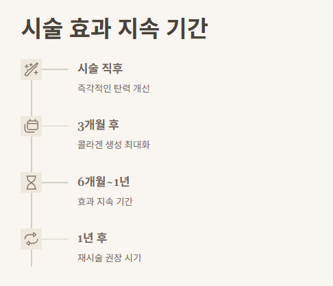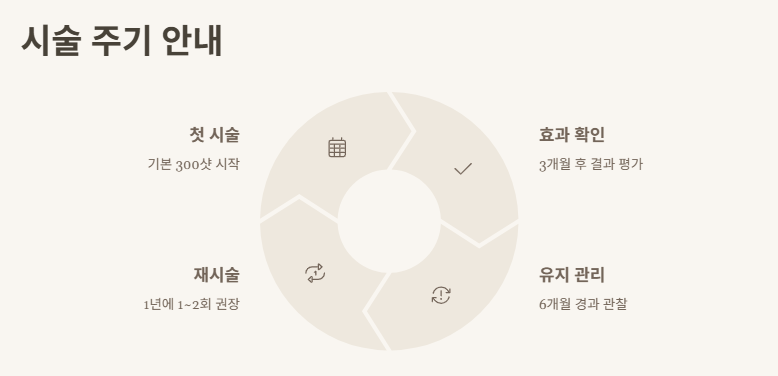 - 1회 시술로 약 6개월에서 1년 간의 효과를 기대할 수 있습니다.