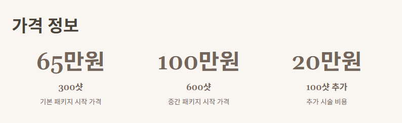 - 300샷 기준: 65만원 ~ 100만원