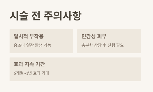 - 시술 후 일시적인 홍조나 열감이 발생할 수 있습니다.