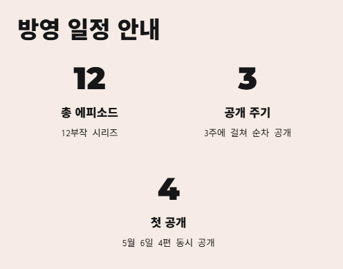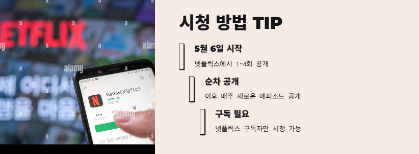 넷플릭스에서 5월 6일부터 1~4회, 이후 매주 순차 공개된다.
