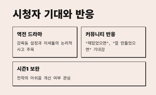 40대 여성 시청자로서 “데블스 플랜2 기대평”을 남긴다면, 감옥동이라는 설정과 이세돌의 논리적 사고가 만들어낼 역전 드라마에 주목하고 싶다. 실제로 커뮤니티에서는 “재밌었으면”, “이번엔 제발 잘 만들었으면 좋겠다”는 의견이 많다. 저 또한 시즌1의 아쉬움을 보완할 수 있을지 유심히 지켜보고 있다.
