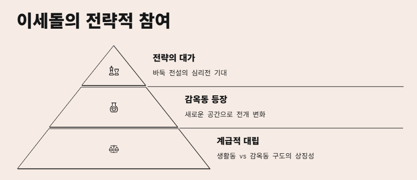 가장 큰 관심사는 바로 이세돌의 출연이다. ‘이세돌 데블스 플랜2 출연’은 팬들 사이에서 일찍이 화제를 모았다. 바둑의 전설이자 전략의 대가인 이세돌이 어떤 방식으로 다른 참가자들과의 심리전을 이끌어갈지가 관전 포인트다. 데블스 플랜2에서는 ‘감옥동’이라는 새로운 공간이 등장하면서, 시즌1과는 전혀 다른 방식의 전개가 기대된다. 기존의 ‘생활동 vs 감옥동’ 구도는 단순한 승부를 넘어 ‘계급적 대립’이라는 사회적 상징으로까지 해석될 수 있다.