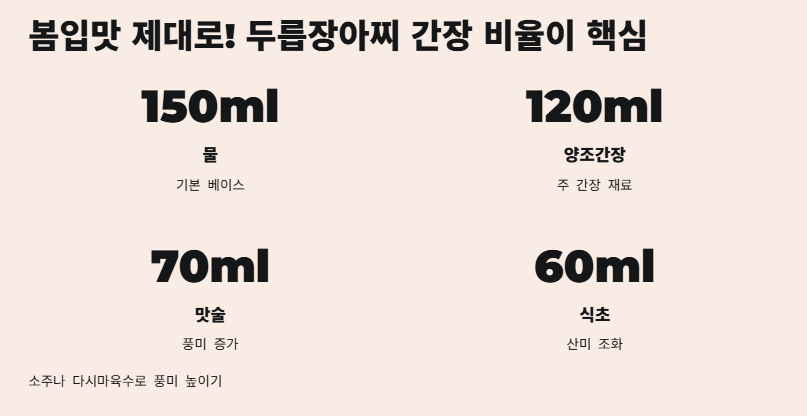 이 조합은 너무 달지 않으면서도 감칠맛과 산미가 조화를 이루는 비율입니다. 소주나 다시마육수를 활용하면 풍미를 높일 수 있어요. 저도 이 비율을 기본으로 약간 조절해가며 가장 맛있는 포인트를 찾아가고 있어요.