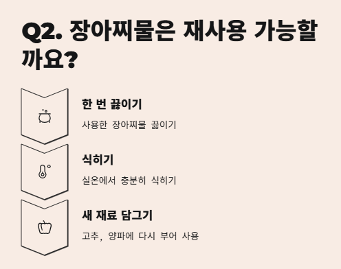 - 장아찌물이 남았다면 양파, 고추 등을 새로 넣어 재활용 가능