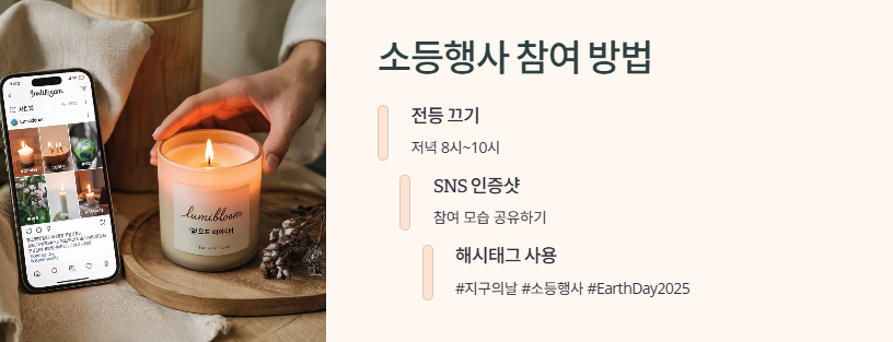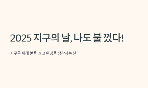 저녁 8시부터 10시까지 전등 끄고, SNS 인증샷 올리면 끝! 해시태그는 #지구의날 #소등행사 #EarthDay2025.