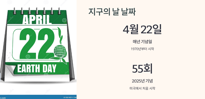 매년 4월 22일이에요. 1970년 미국에서 처음 시작된 날이죠.