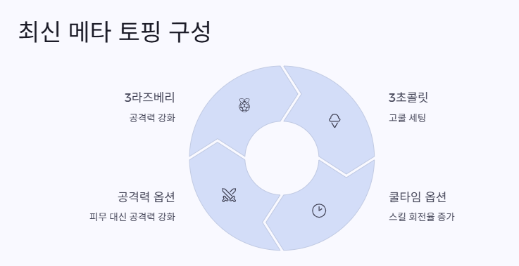 이 조합에서 이슈는 거의 메인딜러 포지션이에요. 쿨타임만 잘 세팅하면 진짜 무서운 딜을 뿜어냅니다.