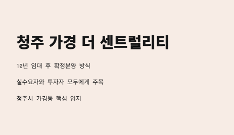 영상 : 청주 가경더센트럴리티 10년 민간임대 확정분양가 아파트 선착순 줍줍