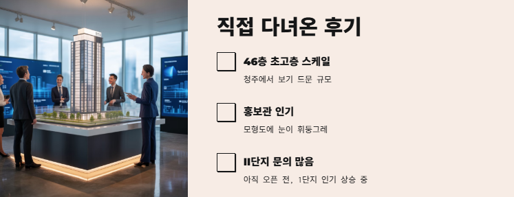 솔직히 처음엔 ‘가경 더 센트럴리티’가 뭐지? 그냥 또 하나의 아파트겠지~ 싶었는데, 진짜 갔다 오고 나선 생각이 완전 바뀌었어요. 일단 홍보관 들어서자마자 안내받은 모형도에서 눈이 휘둥그레... 46층이래요. 청주에서 이 정도 스케일 보기 드문 거 아시죠?