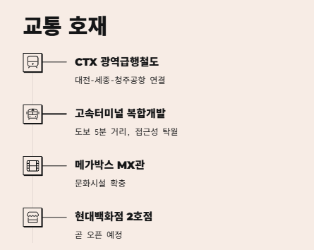 진짜 결정적이었던 건 교통 호재였어요. 광역급행철도 CTX가 청주에 들어선다고요! 대전-세종-청주공항까지 연결되고, 역사도 생긴대요. 이건 솔직히 지역 가치가 올라갈 수밖에 없는 조건이에요.