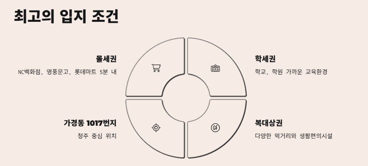 청주 중심 상권인 가경동과 복대동 사이, 몰세권 + 학세권 + 교통호재가 결합된 최적의 조건입니다. - 미래가치도 탄탄