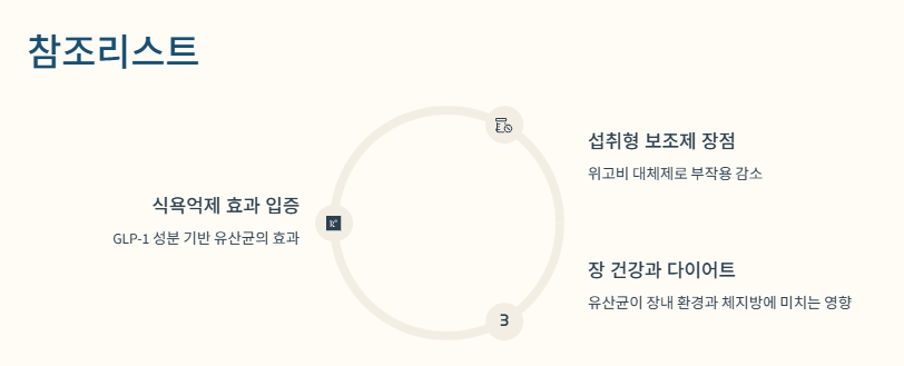→ GLP-1 성분 기반 유산균이 식욕 억제에 효과적이라는 연구 자료 인용