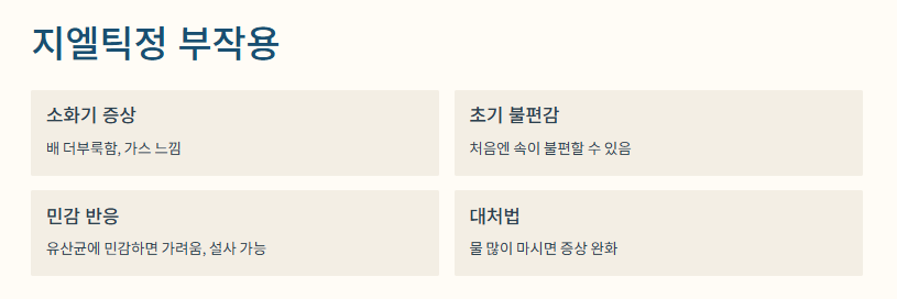 → 장 건강 변화로 인한 불편함, 속 불편감 등에 대한 유의사항 정리. - 지엘틱정 복용법과 구매 요령