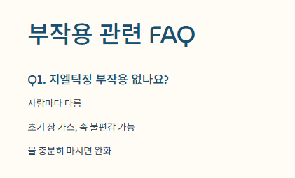 A1. 사람마다 다르지만, 초기엔 장에 가스가 차거나 속이 불편할 수 있어요. 물 충분히 마시면 괜찮아집니다.