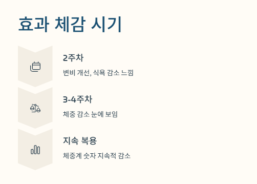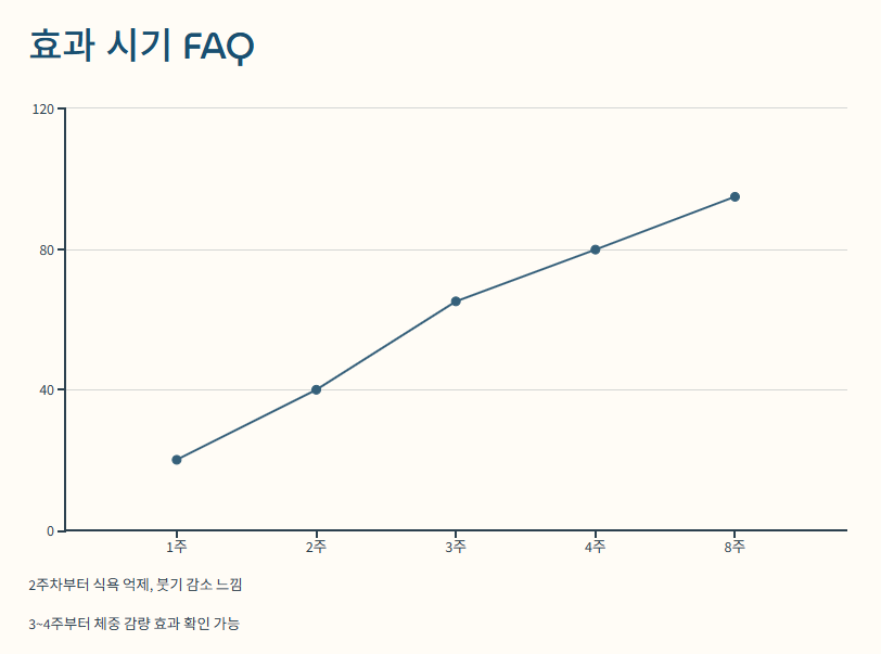 A3. 보통 2주 차부터 식욕 억제나 붓기 감소 느낌이 들고, 3~4주부터 체중 감량 효과가 보입니다.