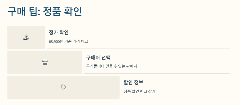 구매 팁: 정품 꼭 확인하기