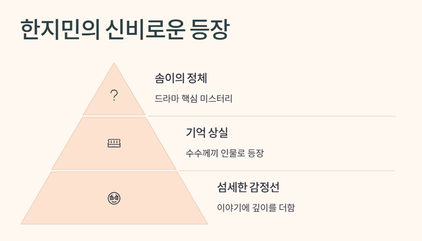천국보다 아름다운 출연진 중 한지민이 연기하는 솜이는 기억을 잃고 등장하는 수수께끼의 인물입니다. 그녀의 정체가 밝혀지는 과정은 드라마의 흥미를 유지시키는 핵심 장치입니다. 출연진 중에서도 미스터리한 캐릭터를 맡은 그녀는 감정선을 섬세하게 표현하며 이야기에 깊이를 더합니다.