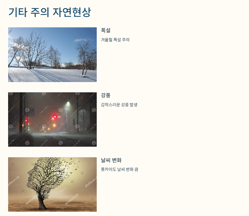 Q. 홋카이도 여행 시 지진 외에 주의해야 할 자연현상은?