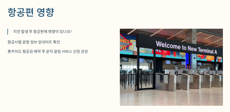 Q. 지진 발생 후 항공편에 영향이 있나요?