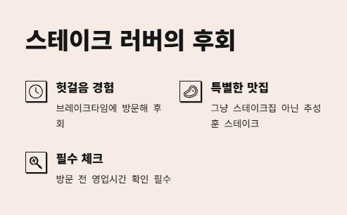 마초스테이크 영업시간이 이렇게 중요할 줄 몰랐던 나, 진심으로 후회했어요. 고기 러버로서 스테이크엔 눈이 돌아가는 편인데, 마초스테이크는 그냥 스테이크집이 아니더라구요. 추성훈 스테이크라는 이름까지 들으면 솔직히 무조건 궁금해지잖아요? 그래서 찾아봤죠. "마초스테이크 영업시간". 이거 체크 안 하고 갔다가 브레이크타임에 딱 걸린 1人...