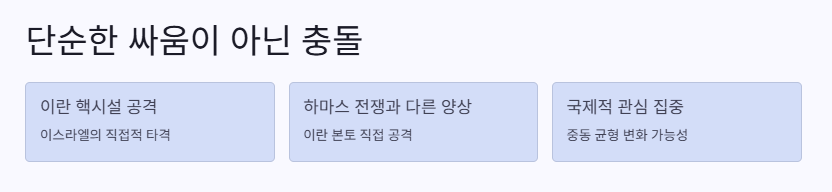 이전에도 이스라엘 전쟁 소식이 나오면 하마스 얘기랑 섞여서 복잡했는데, 이번엔 “이스라엘 하마스 전쟁”이랑은 달라. 아예 이란 본토를 공격한 거니까.